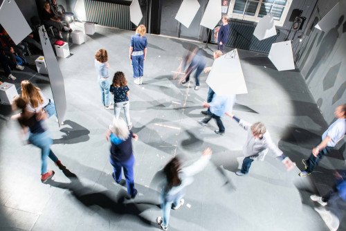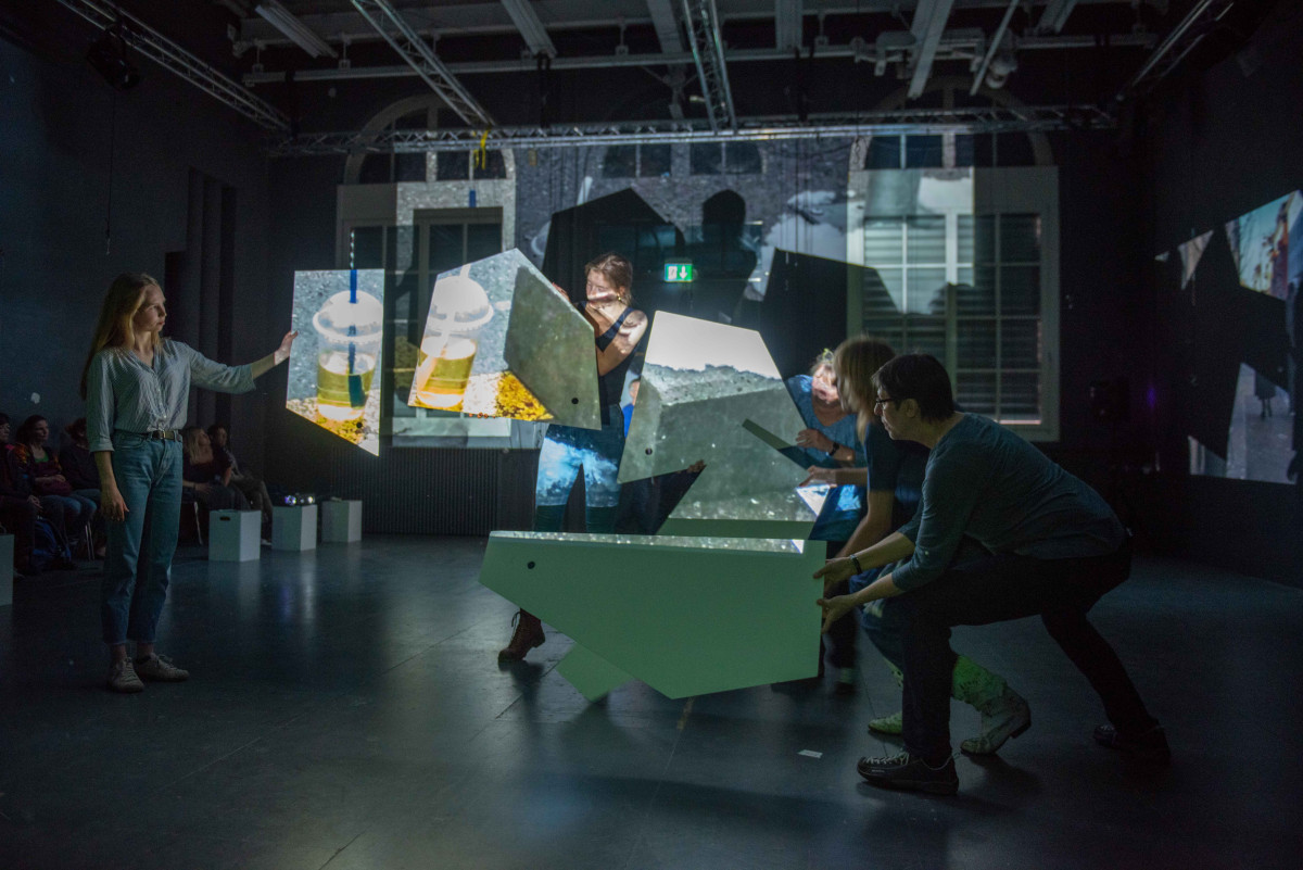 In der Performance Soulmates fügen 17 Performer*innen szenografische und biografische Puzzleteile zu immer neuen Projektionsflächen und Geschichten zusammen. Lebensnah bis utopisch erzählen die Performer*innen von Anfängen und Enden, von Gemeinsamkeiten und Unterschieden und von Gefühlen, die oft im Verborgenen bleiben: “Ich bekenne, dass ich manchmal versuche in einem Streit nicht gemein zu sein, nur, um am Ende gut da zu stehen.